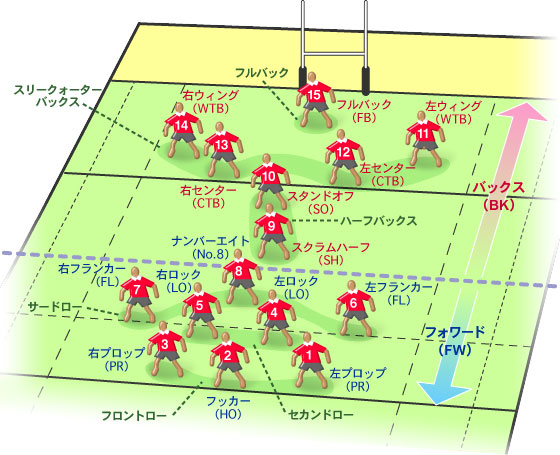 ラグビーのルール【ポジションと役割/15人のポジション名】