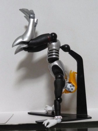 逆立ちした状態で膝と腰を曲げ、肛門を天に突き出しているようにも見える。