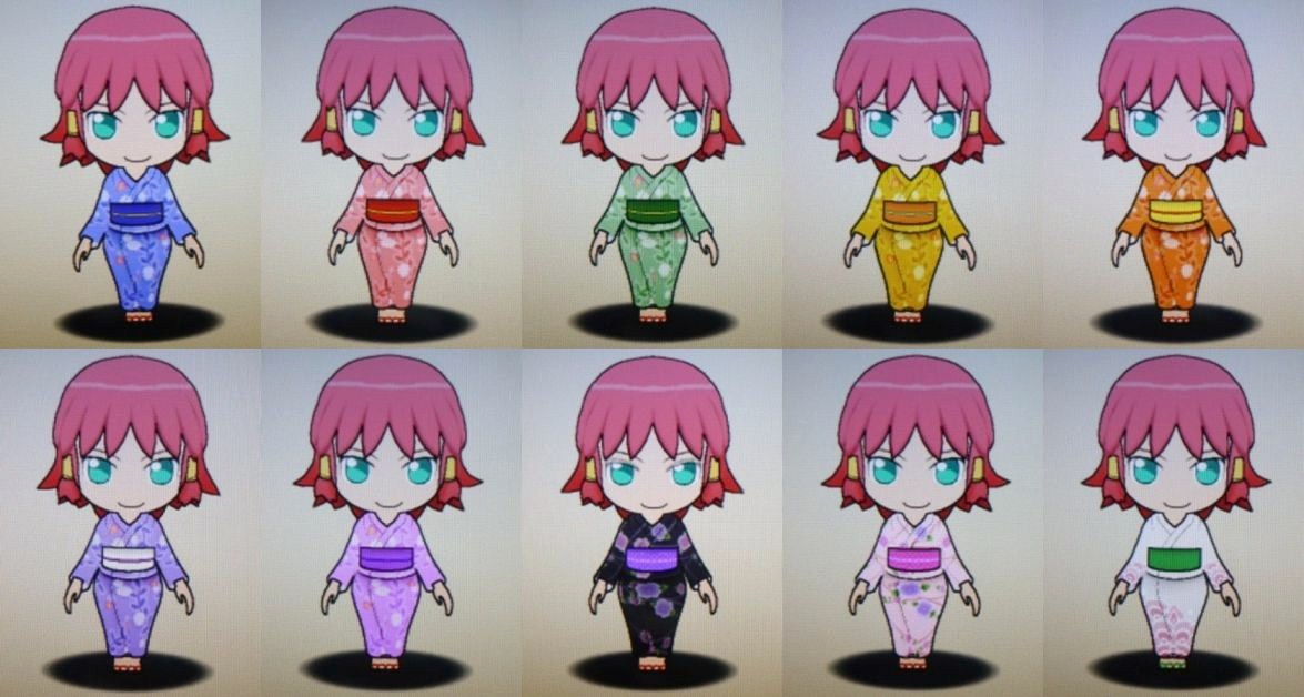 最後の3つ(黒、薄紅、波)はパセリ限定アイテムで、男子のゆかたとは柄も違う。